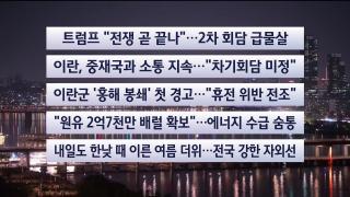 [투나잇이슈] 트럼프 "전쟁 거의 끝나"…'2차 회담' 급물살<출연 : 마영삼 전 이스라엘 대사 · 조한범 통일연구원 석좌연구위원>미국과 이란의 휴전 시한이 반환점을 돌았습니다.트럼프 대통령은 전쟁이 거의 끝났고, 이틀 내 뭔가 이뤄질 거라며 회담 재개를 사실상 시사했습니다.관련